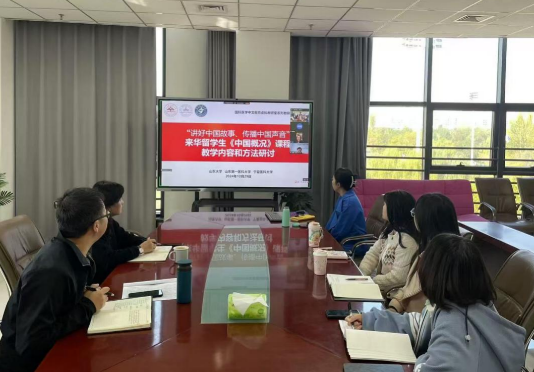 10月29日,学校国际教育学院联合山东大学国际教育学院、山东第一医科大学国际教育学院共同举办了国际医学中文教育协同创新中心虚拟教研室教研活动。山东大学国际教育学院教师朱瑞蕾、甄珍,山东第一医科大学国际教育学院教师付宁,学校国际教育学院负责人、全体专职教师参加活动。活动由国际教育学院副院长韩晓宝主持。