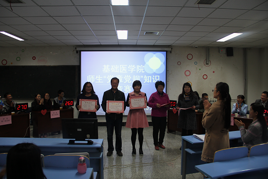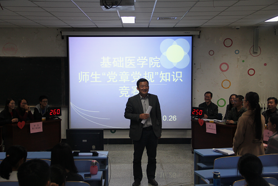 为深入开展“两学一做”学习教育,加强党员学习教育,提升党性修养,2016年10月26日,宁夏医科大学基础医学院在厚生楼101教室举行“党章党规及长征”知识竞赛,共有来自教工党支部、学生党支部和院党委共6支代表队参加竞赛。