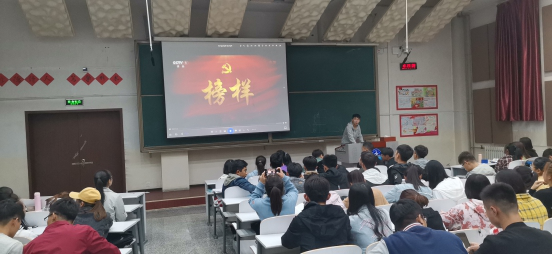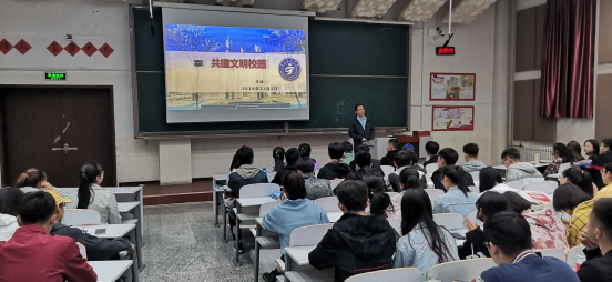 2019年11月3日下午,基础医学院全体本科生在应谦教学楼104教室开展“共建文明校园”主题晚点名活动。兼职辅导员马威老师主持,并观看视频《榜样4》。