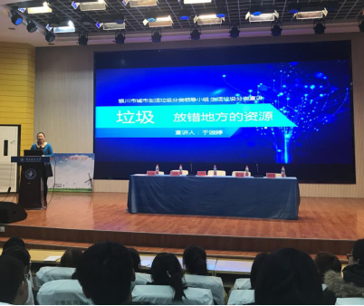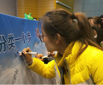 启动仪式结束后,为了让同学们更进一步了解垃圾分类的知识及意义,银川市荣洁公司张加震副总经理和宣讲员于淑婷女士分别就银川市垃圾大分流情况和生活垃圾分类知识以及校园如何开展垃圾分类做了详细解读。同学们细心聆听,认真感悟。活动最后,与会的全体志愿者们依次在“垃圾分类一小步、文明进步一大步”的签名条幅上签下自己的名字,以此方式许下自己的承诺。