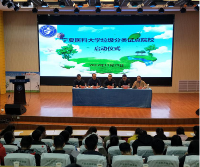 进一步促进垃圾分类校园宣传工作,帮助大学生了解垃圾分类的重要性,增强大学生环境保护意识,11月29日下午,宁夏医科大学垃圾分类试点院校启动仪式在应谦楼启思学术报告厅举行。银川市城管局垃圾分类工作相关负责人、宁夏医科大学团委与基础医学院部分领导及宁夏医科大学200多名志愿者参加了启动仪式。