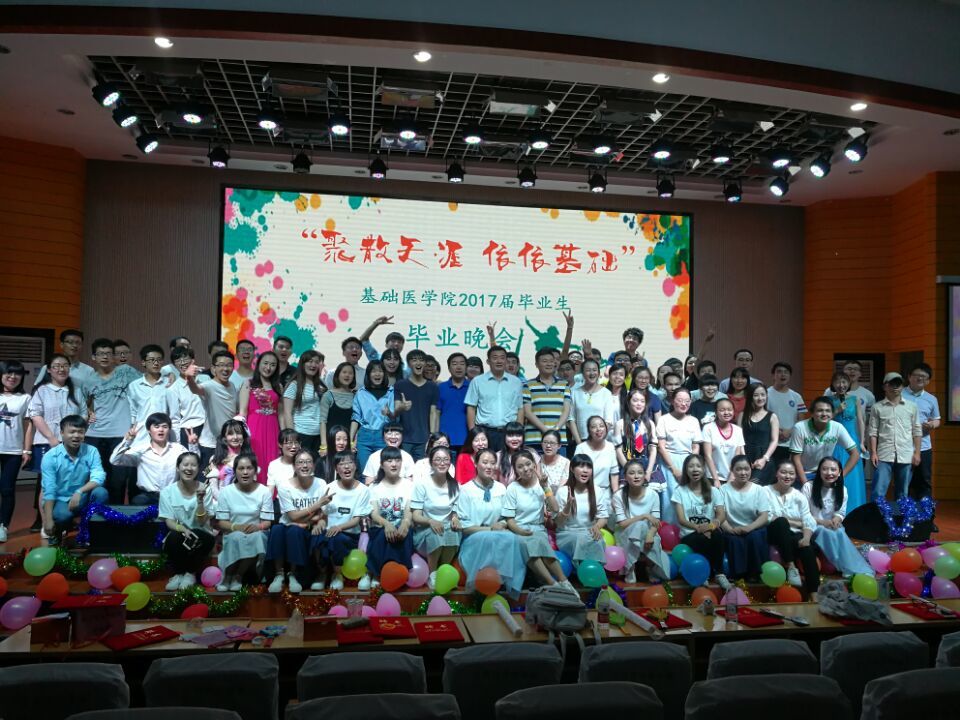 基础医学院6月15日晚19时在教学楼启思学术报告厅举办“聚散依依 情深基础”—— 2017届毕业生联欢晚会。学院领导、辅导员、部分教师代表和全体学生出席并与毕业生依依话别。