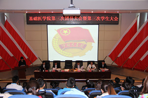 4月6日下午,“基础医学院第三次团员大会暨第三次学生大会”在雁湖校区正德楼第二会议室如期举行。学校团委书记孙冬梅、学生处副处长李亚红及基础医学院党委书记周永伟、党委副书记何向华、学校学生会副主席朱子超同学应邀出席会议。学院85名青年团员及学生参加了大会。