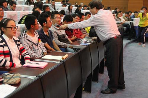 潘志涛教授以《简述杨丽萍与孔雀舞》为题,从专业的角度解析杨丽萍与孔雀舞,以及对中国民族民间舞以后的发展带来的影响和意义。他提出了弘扬民族民间舞蹈,应该接触民间、了解民间、深入民间,从中提取、吸收简单而富有感情的舞蹈元素创作出好的舞蹈作品,让民间舞从广场走入课堂,再由课堂搬上舞台,这才是对民间舞蹈最好的继承和发展。教授以其幽默诙谐的讲座方式与生动活泼的肢体语言感染了在座的每位师生。