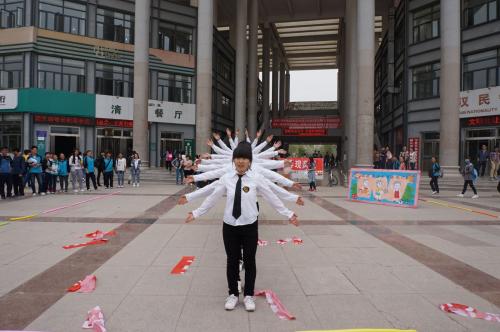 本次活动共分为四项。在开场时进行了《舞动青春》舞蹈表演,欢快的音乐响起来,队员们犹如一个个小精灵,整齐而又搞笑的动作,引来同学们的驻足和掌声;之后进行了“心有千千结”游戏,通过游戏增加了同学们之间的默契;还有“猜歌名”游戏,贴近广大同学生活,更显娱乐性,放松大家的心情;最后进行了撕名牌游戏。