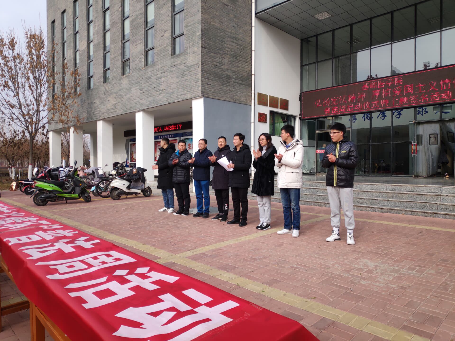 启动仪式上,学院党委副书记马立虎宣读了《基础医学院“弘扬宪法精神 厚植爱国主义情怀”普法周活动方案》,并要求学院各班级、全体学生要认真落实活动各项安排,积极参与学习宣传,以实际行动深入学习贯彻习近平总书记全面依法治国新理念新思想新战略,不断增强“四个意识”,坚定“四个自信”,做到“两个维护”,坚定不移走中国特色社会主义法治道路。学生代表王艳佳在发言中,号召广大青年学生要主动学习、积极参与、认真实践,不断增强宪法法律意识、养成遵法守法习惯,争做学法、懂法、知法、守法的合格大学生。随后,学校党委宣传部副部长李谦老师宣布活动正式启动。领导老师及同学们还一起进行了签名承诺,并参与了法制知识有奖竞答。