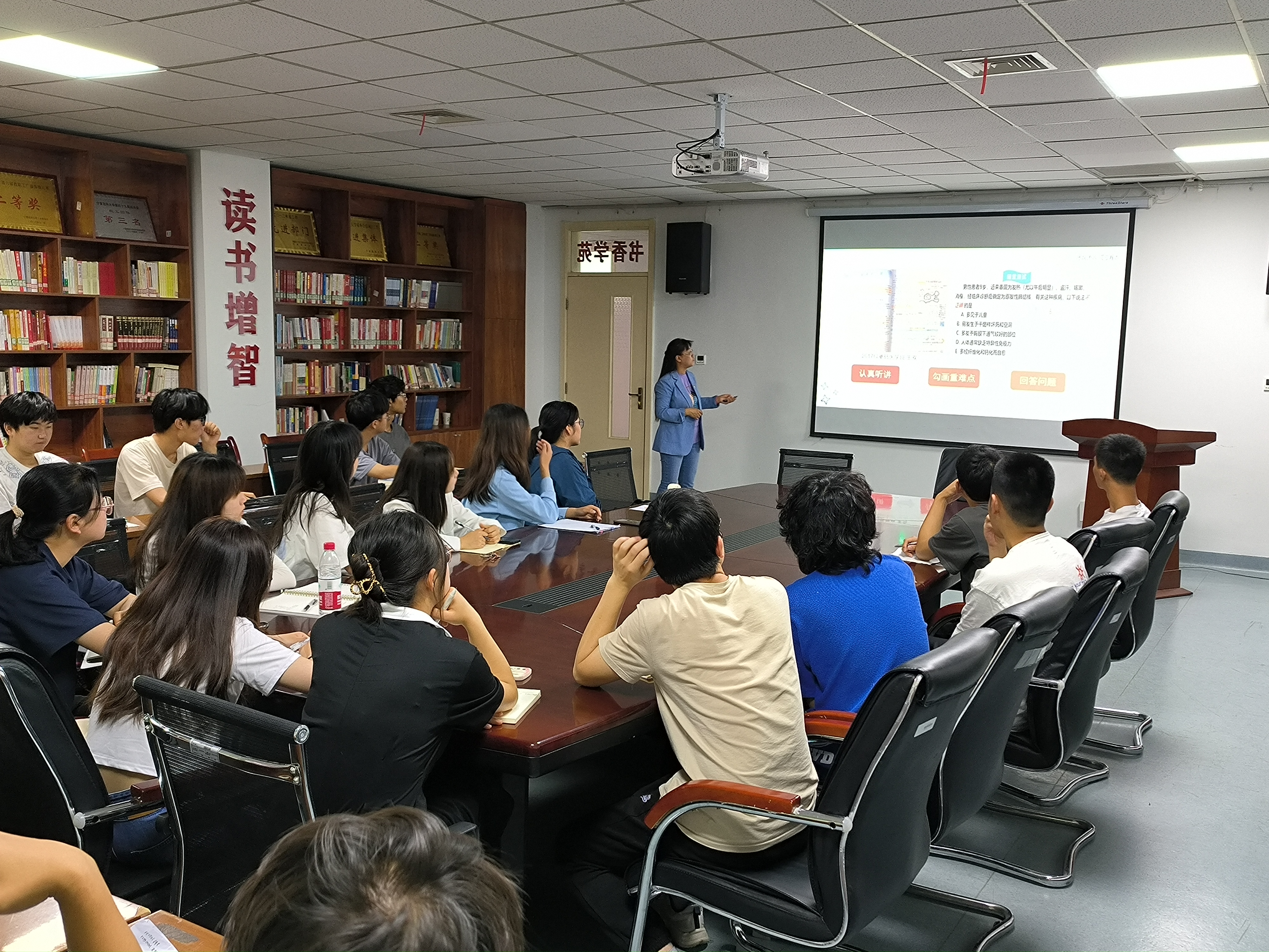 张艳丽首先介绍了《宁夏医科大学“直博生”招生工作实施细则》的文件要求,讲解了课前预习、课中听讲和记笔记、课后复习的方法,推荐了两种阅读方法。提醒同学们一定要提高学习效率,养成良好的学习习惯,发扬“咬定青山不放松”的奋斗精神达成学业目标。高强结合个人就读五年本科的学习及成长,分享了他专业课的学习方法、社会实践、科研经历、比赛竞赛等,强调学习方法的重要性,建议同学们脚踏实地,心向远方,真正成就卓越拔尖。