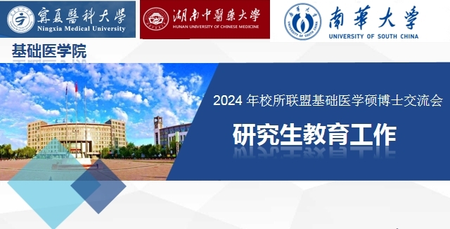 2024 年 5 月 24 日下午,我校基础医学院与湖南中医药大学医学院、南华大学基础医学院开展线上校所联盟基础医学硕博士交流。湖南中医药大学医学院副院长唐群、南华大学基础医学院副院长张晓东、基础医学院研办主任高媛媛以及各院校教师和硕博士研究生100余人参加了交流会议。