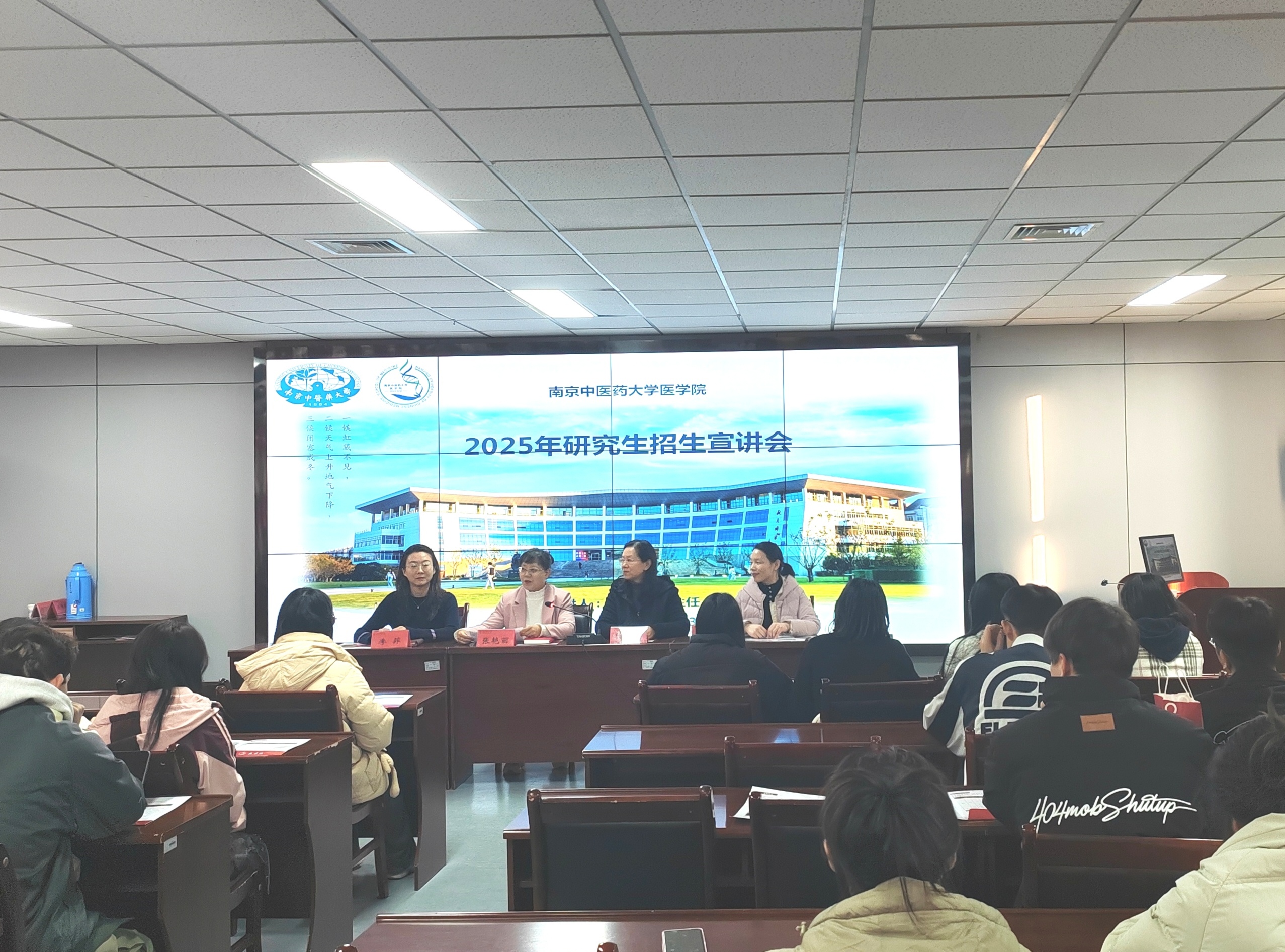 随着毕业人数的逐年增加,高校毕业生的就业形式日趋严重,为了使学生提前树立就业意识,了解考研相关政策及流程、规划考研目标,全面了解理想院校学科专业、师资力量、奖助政策等内容,2024年12月3日下午,基础医学院特邀请南京中医药大学医学院在学院党员之家举办2025年研究生招生宣讲活动。活动由学院党委副书记张艳丽主持。学院毕业班辅导员、2026届本科毕业生和学校相关专业学生参加。