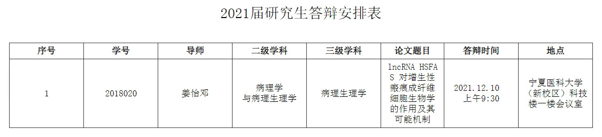基础医学院2021届研究生答辩安排表(第15周)