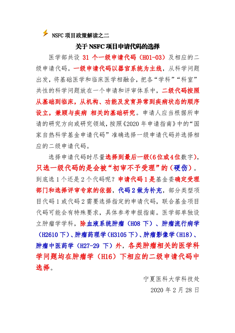 2020年国家自然科学基金政策解读系列2——申请代码选择