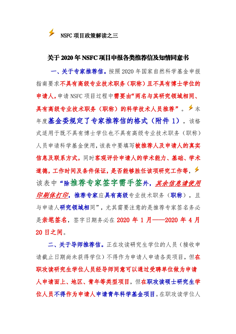 2020年国家自然科学基金政策解读系列3——各类推荐信及知情同意书