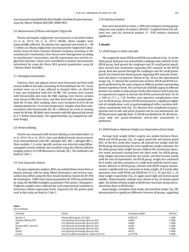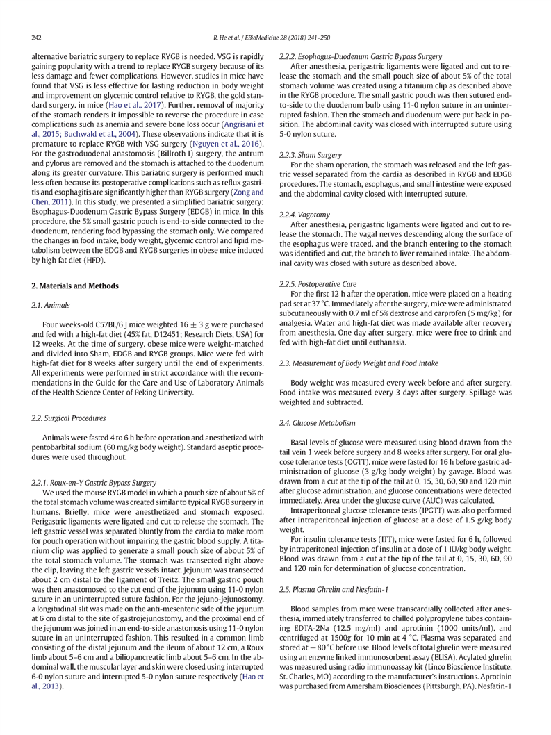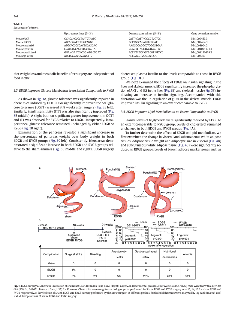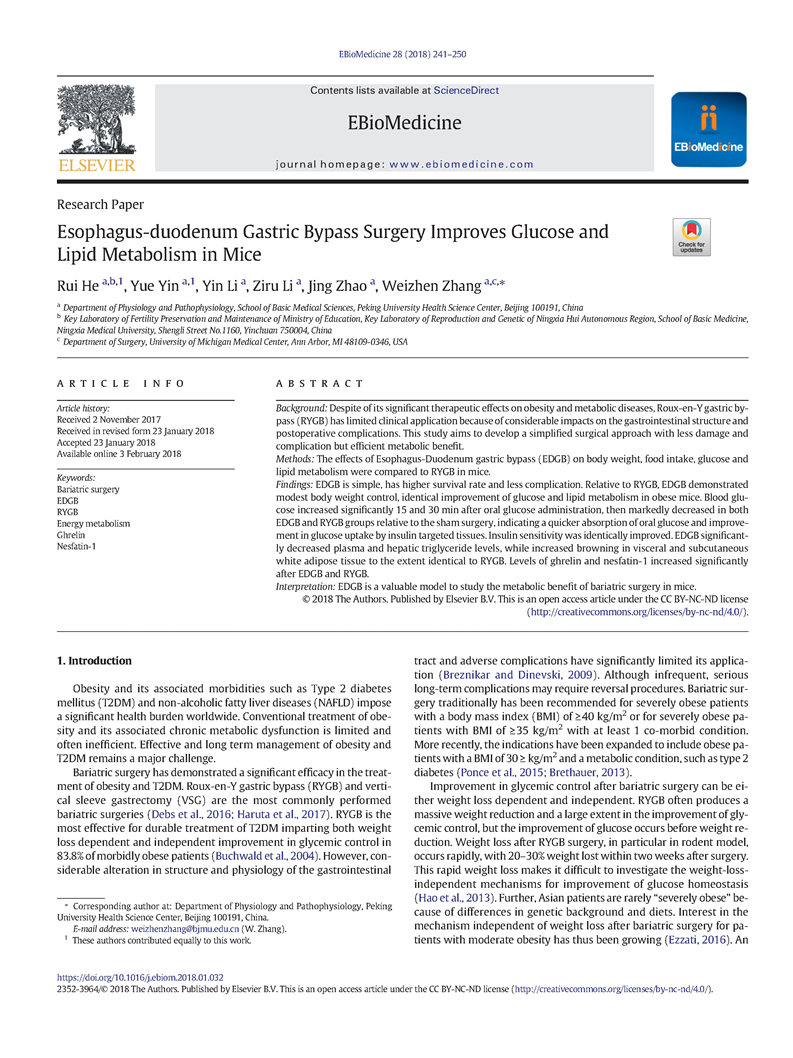 何瑞等 IF6.183 Esophagus-duodenum Gastric Bypass Surgery Improves Glucose and Lipid Metabolism in Mice