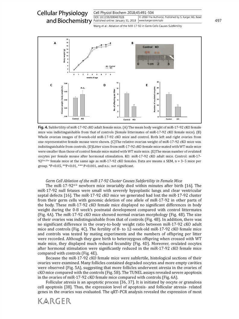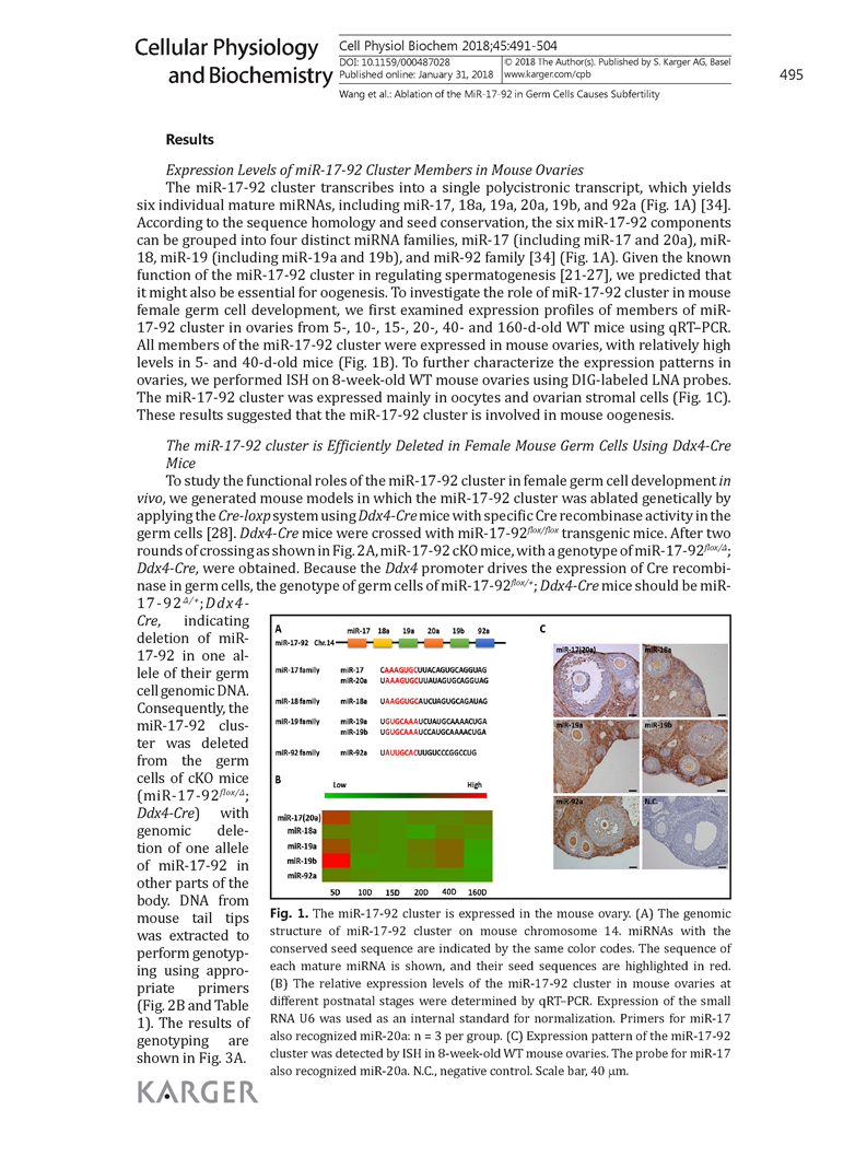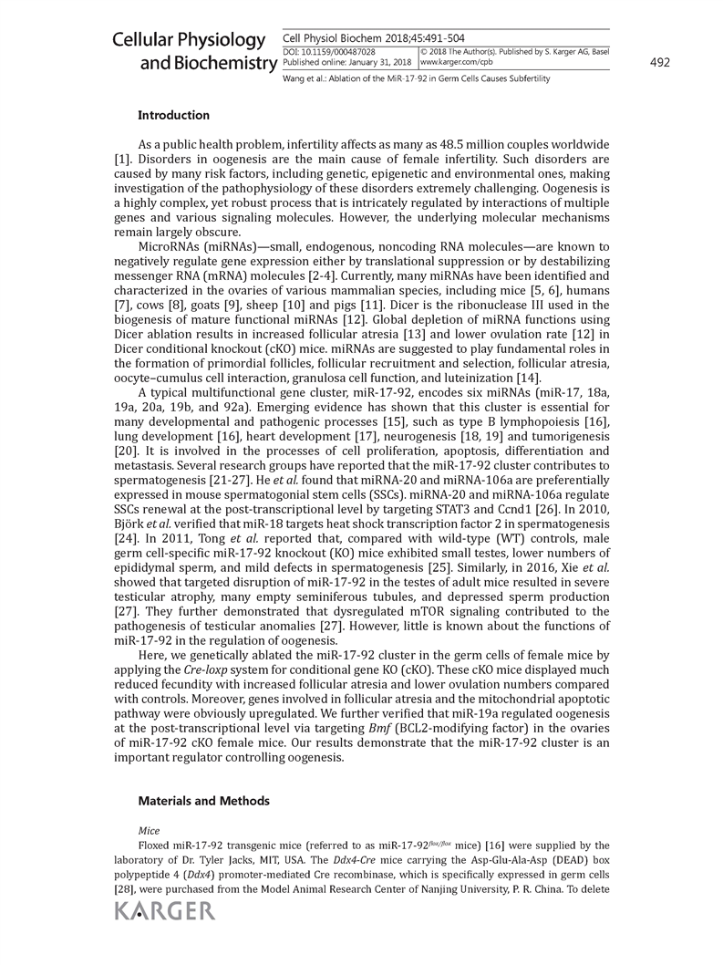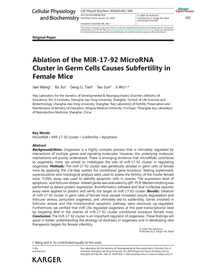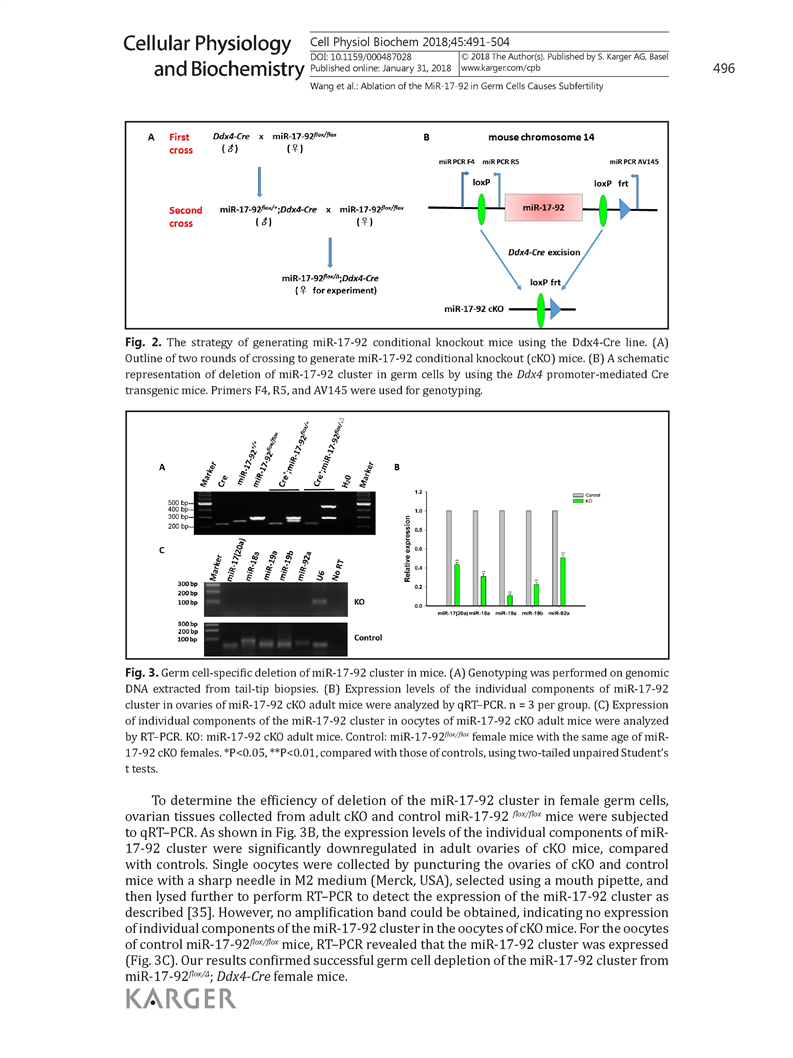 吴际等 IF5.5 Ablation of the MiR-17-92 MicroRNA Cluster in Germ Cells Causes Subfertility in Female Mice