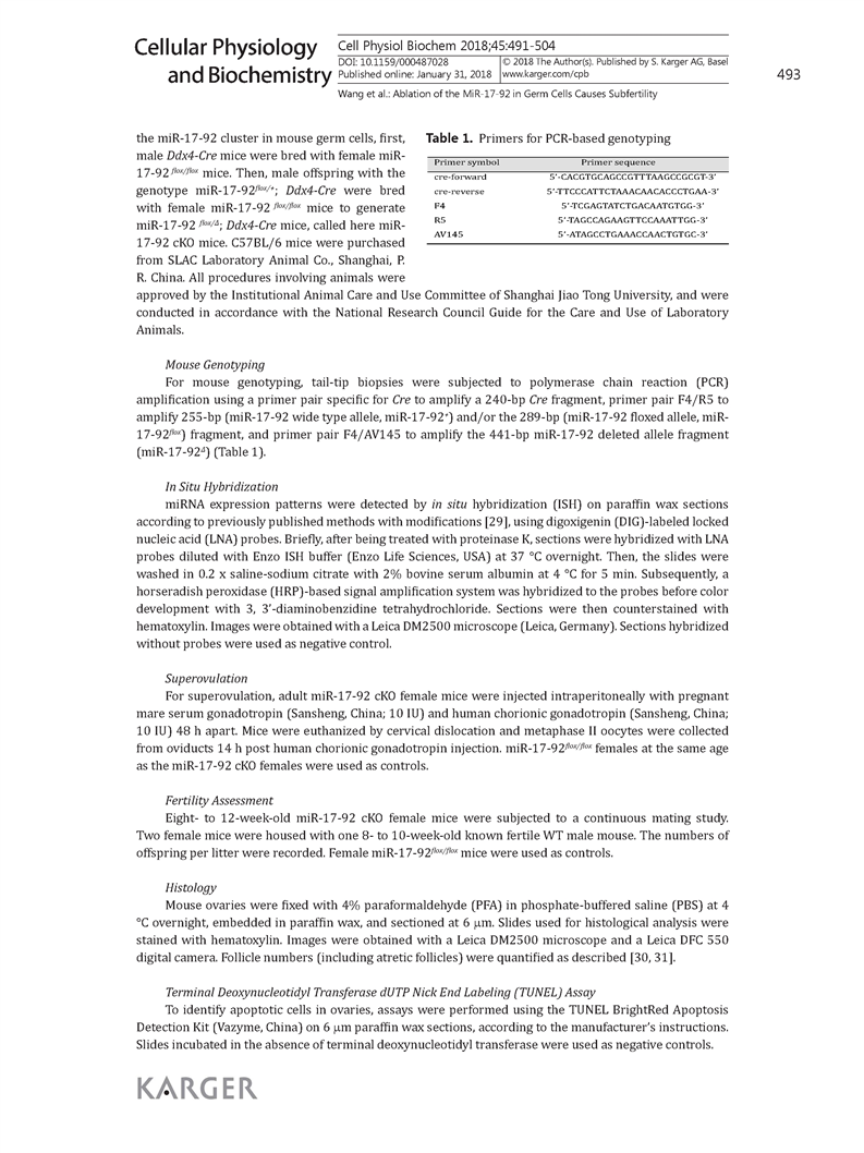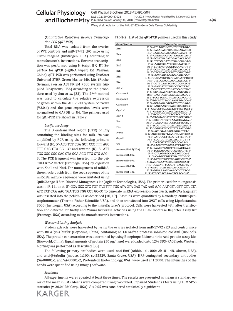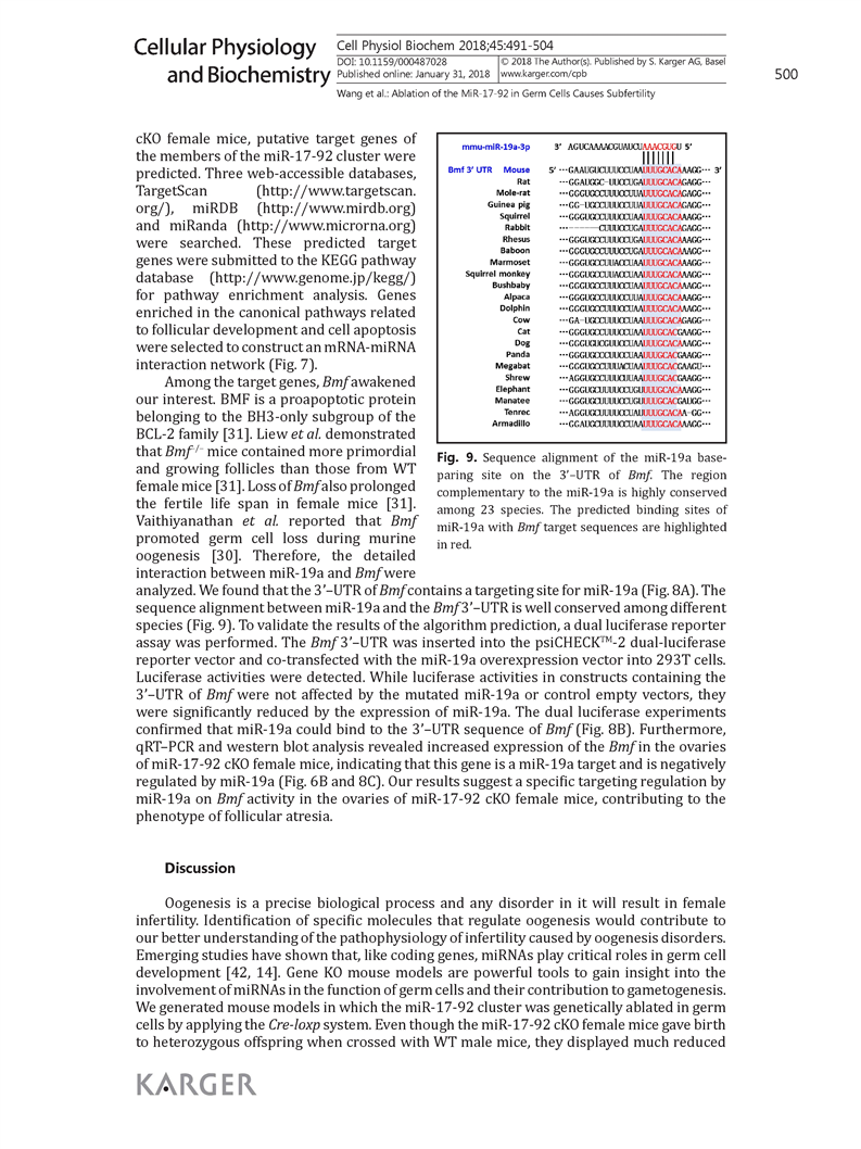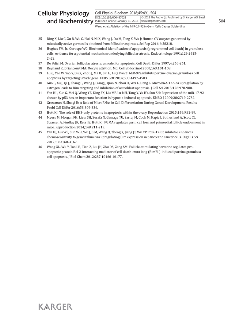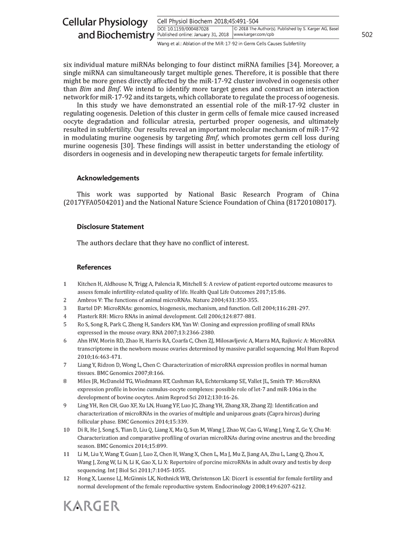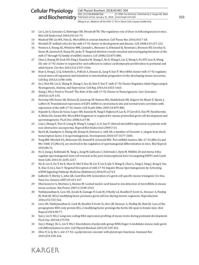 吴际等 IF5.5 Ablation of the MiR-17-92 MicroRNA Cluster in Germ Cells Causes Subfertility in Female Mice