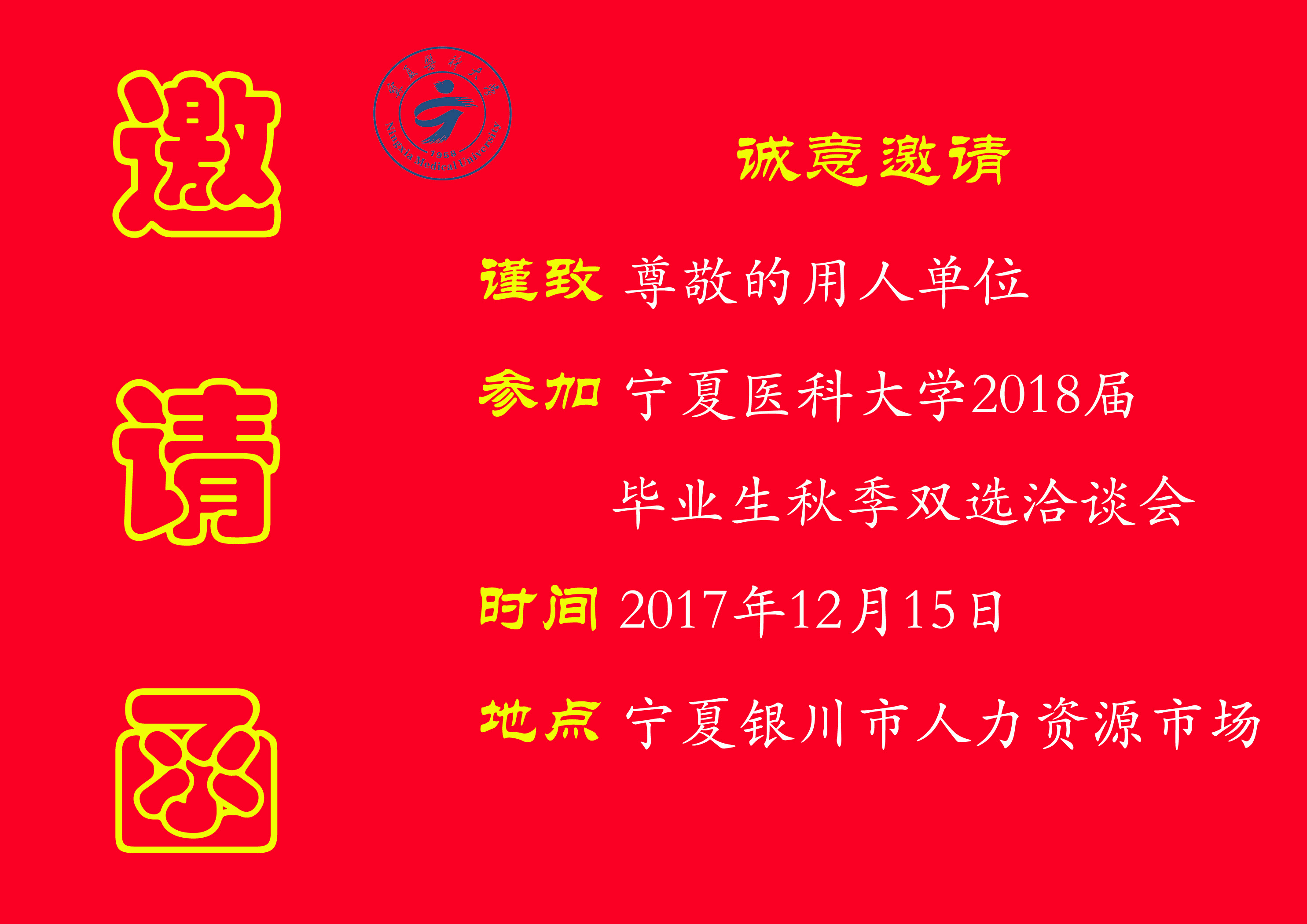 宁夏医科大学2018届毕业生秋季就业双选洽谈会邀请函